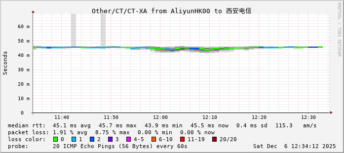 5. 中间数据包延迟 RTT 0.045500 秒